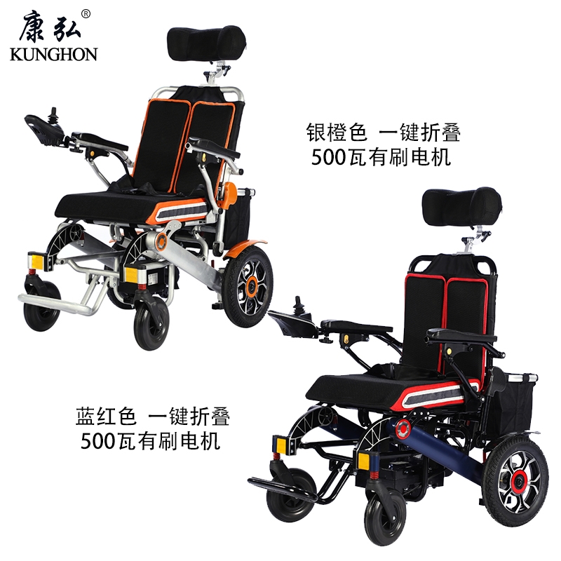 一键折叠电动轮椅500W有刷电机电磁刹车手电动模式切换智能控制器品牌锂电池